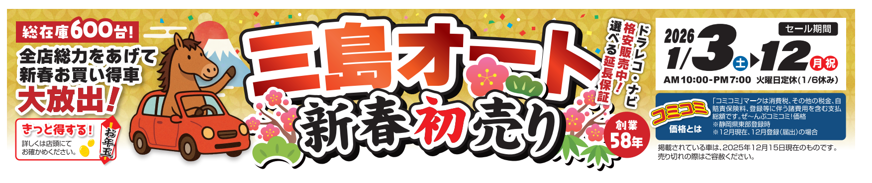 静岡県東部に5店舗を展開し優良中古車を展示・販売しております。自社整備工場を完備しご購入後のアフターサービスも万全です。 安心の最長3年保証も好評です!